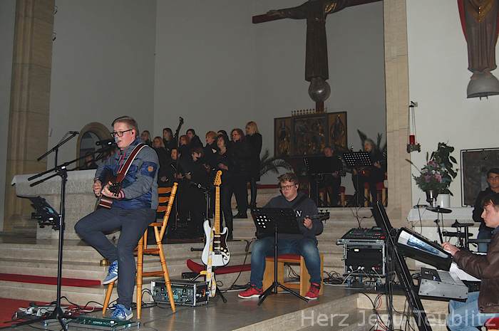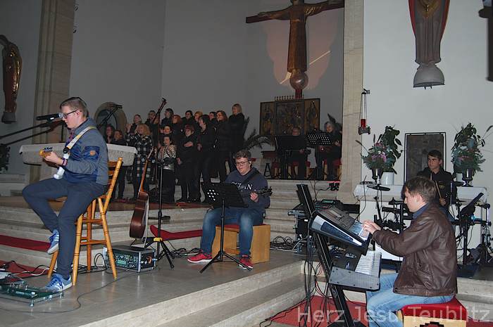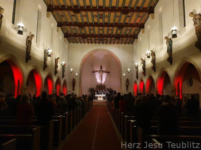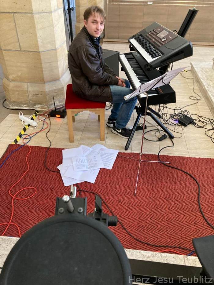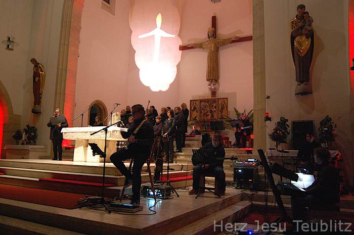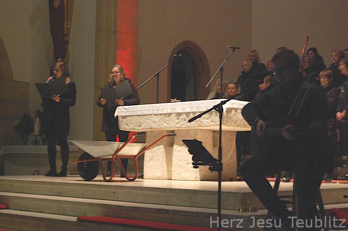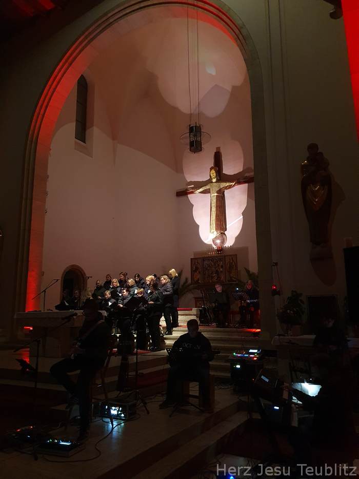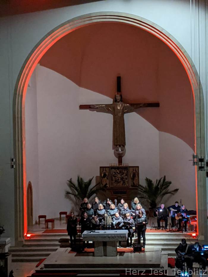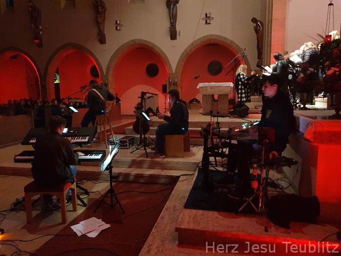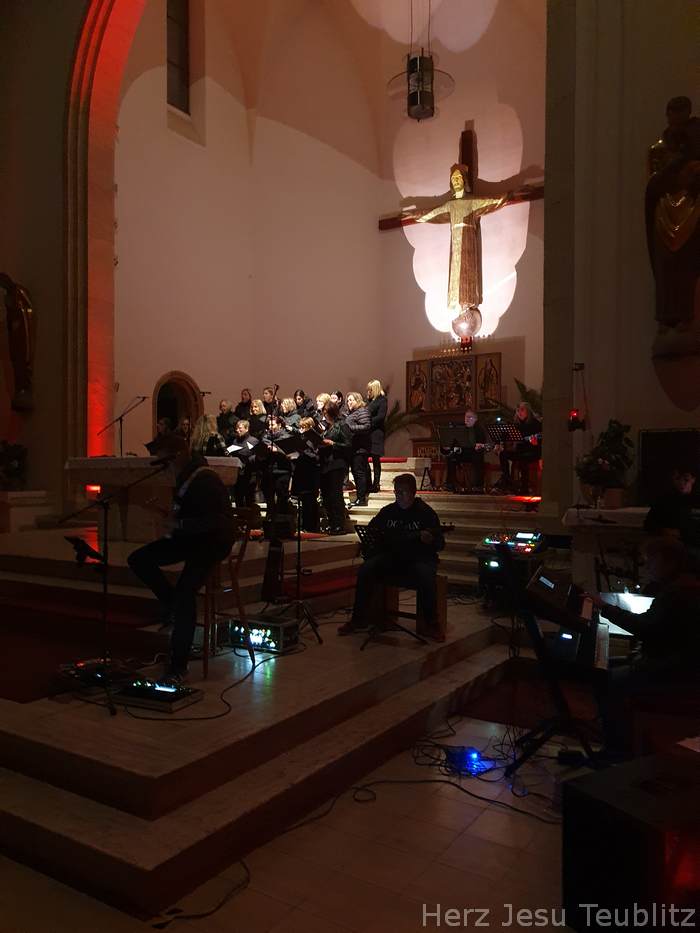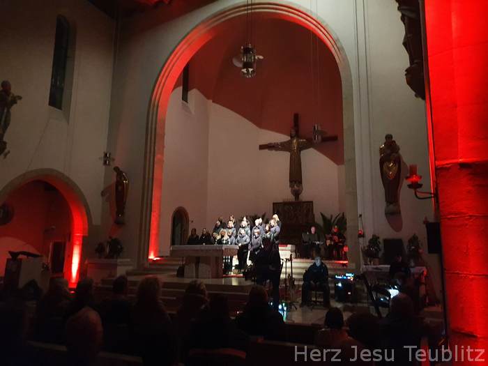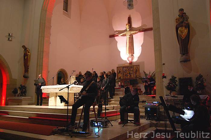 Alles begann während der Ausgangssperre im Winter 2021, als Teublitz gerade hart vom Corona-Virus getroffen war. „Wie können wir den Menschen Hoffnung schenken?“, fragte man sich immer wieder in der Pfarrgemeinde Herz Jesu. Eine Antwort darauf gab Kolpingsvorsitzende Martina Förster: „Gerade jetzt holen wir die Menschen zusammen zu einem gemeinsamen Projekt, das es so noch nie gegeben hat.“ Das Projekt war ein Musical. Auch wenn Anfangs noch nicht klar war, was es sein soll und wer alles mitmachen wird: „Ich habe da einfach auf den Heiligen Geist vertraut.“, lächelt die Martina Förster, die gut in der Pfarrgemeinde Teublitz vernetzt ist. Begeistert von ihrer Idee waren schließlich der Gemeindechor Herz Jesu unter Leitung von Dagmar Gawinowski, die Gitarrengruppe der Kolpingsfamilie und die Band „Die Secklwetzer“, in der zwei Ministranten mitrocken. „Anfangs wurden online Ideen ausgetauscht und sobald es möglich war, traf man sich in Kleingruppen.“, schildert Martina Förster den weiteren Verlauf des Projekts, „Schließlich trug der Pfarrer mit etwas skeptischer Miene den Termin ein und stellte uns sogar die Pfarrkirche zur Verfügung.“
