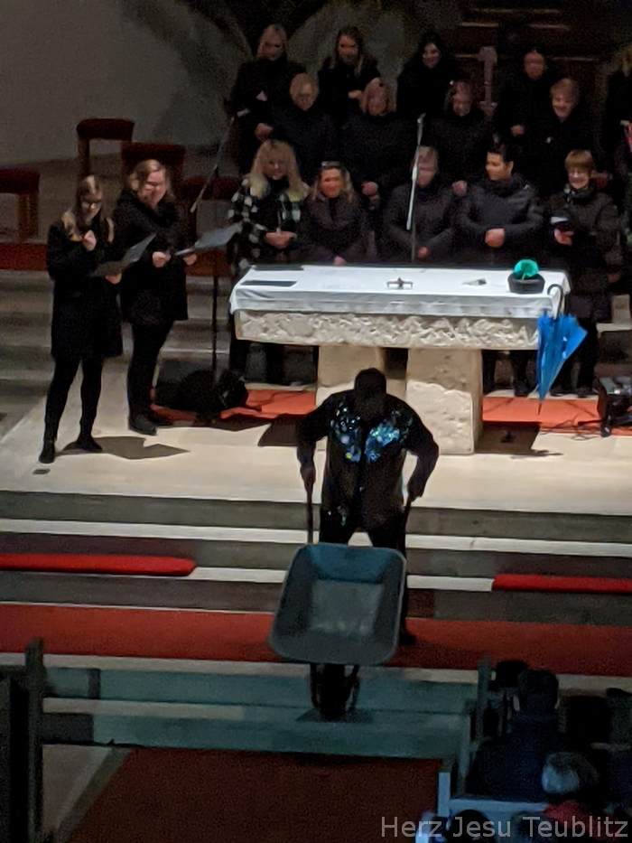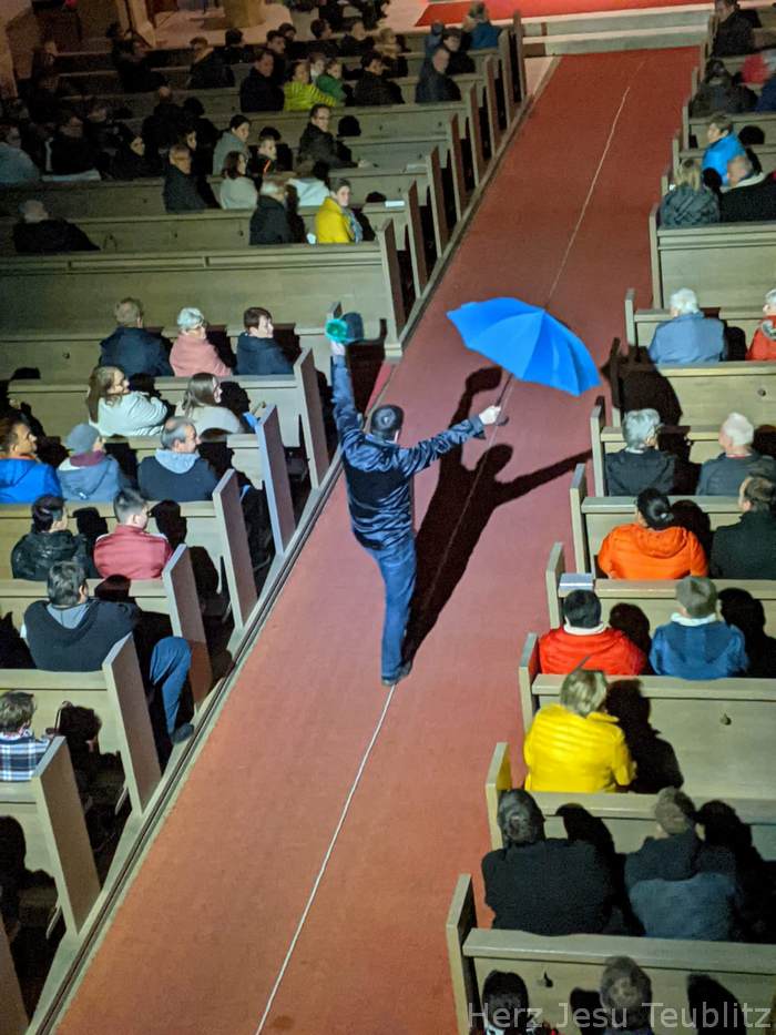 Eine musikalische Erzählung rührte die Herzen der zahlreichen Besucherinnen und Besucher an, als ein Tänzer auf dem Seil durch die Teublitzer Pfarrkirche balancierte. Die Botschaft des Abends war tiefgründig und lies die Mitwirkenden eine ganz besondere Gemeinschaft erfahren. Denn die Tatsachen, dass dieses Projekt zusammenkam, war in Zeiten von Corona alles andere selbstverständlich sondern vielmehr ein Zeichen der Hoffnung. (zum youtube-Video)