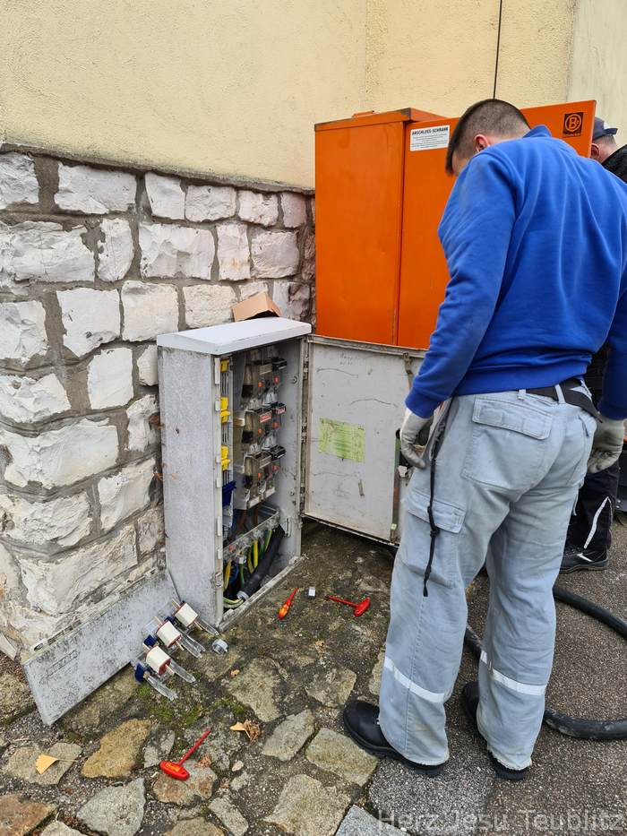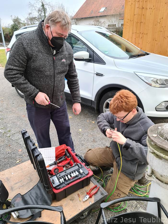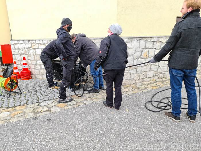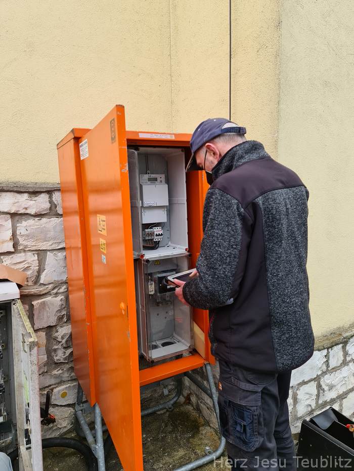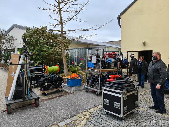 Bevor die Produktions-Teams mit ihrer Arbeit beginnen konnten, musste jedoch das Bayernwerk anrücken. Der Stromanschluss von Kirche, Pfarrheim und Pfarrhaus reicht für den Energiebedarf von Belichtung und Übertragungstechnik nicht aus. Ein zusätzlicher Anschluss von 160 Ampere musste zum Hausanschluss eingerichtet werden. 60 Ampere wird die Beleuchtung benötigen, an die 120 Ampere braucht die Übertragungstechnik für Kameras und Übertragungswägen.