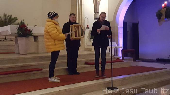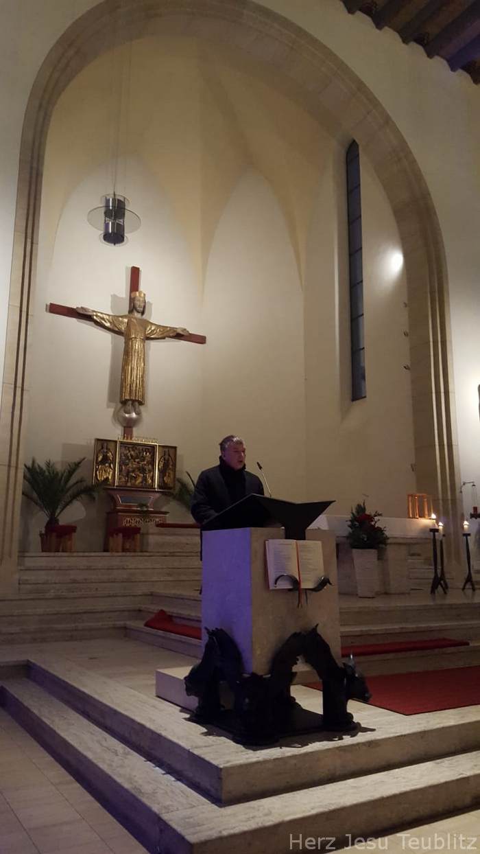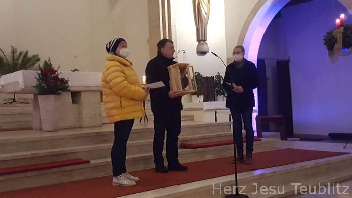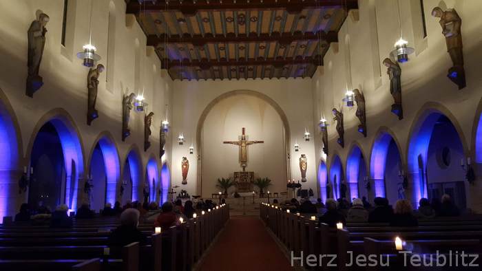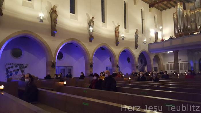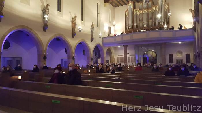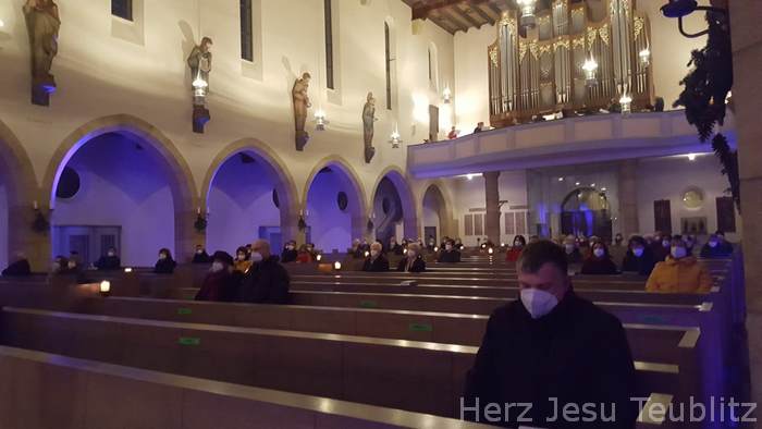 Anstelle des traditionellen Adventskonzert der Teublitzer Chöre am Sonntag „Gaudete“ (Freuet euch), fand heuer eine adventliche Vesper mit Chor- und Instrumentalmusik statt. Da in diesem Jahr das 50. Adventskonzert stattgefunden hätte, hat man mit Beachtung der Beschränkungen der Corona-Pandemie dies in Form eines abendlichen Vespergottesdienstes abgehalten. Nur eine kleine Chorgruppe übernahmen die Gesänge. Die „Stubenmusi“ des Kirchenchors und Markus Dickert mit seinem Baritonhorn ergänzten das bewusst klein gehaltene musikalische Gesangsprogramm.