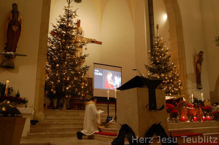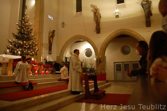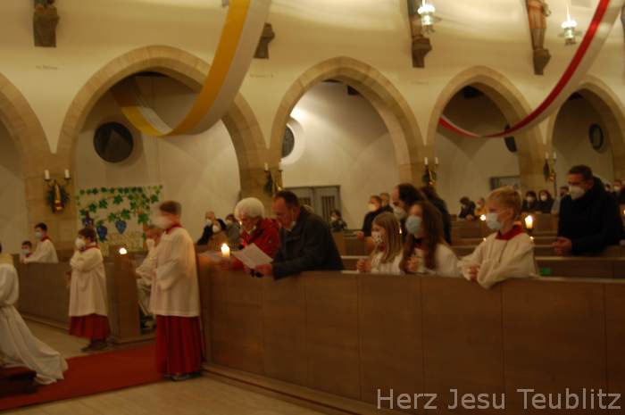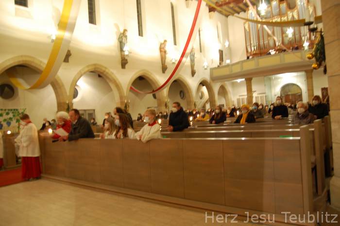 Mit einer ruhigen und meditativen Andacht bedankte sich die Pfarrgemeinde Herz Jesu bei Gott für das Jahr 2021. In einer Bildermeditation tragen verschiedene Heilige auf, welche die Gottesdienstbesucher einluden, über die vergangenen 12 Monate nachzudenken. Vor dem ausgesetzten Allerheiligsten wurde Gott für die geschenkte Zeit gedankt. Am Ende der Andacht spendete Kaplan William Akkala die eucharistischen Segen. Mit der Bayernhymne endete das Jahr 2021 für die Pfarrgemeinde Herz Jesu Teublitz.