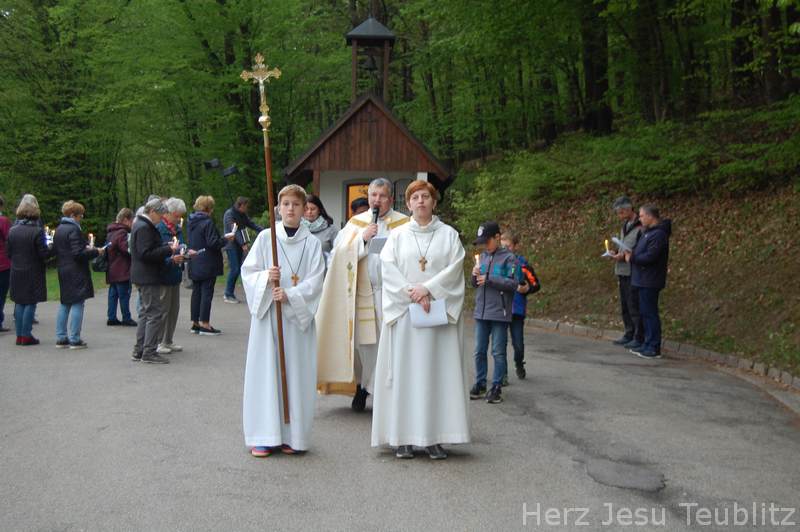 In der Pfarrei Herz-Jesu Teublitz war am Abend des 1. Mai traditioneller Auftakt mit einer Lichterprozession von der Franziskuskapelle am Fuße des Saltendorfer Berges zur Marienkirche Saltendorf. Nach einer kurzen Andacht an der Franziskuskapelle mit Pfarrer Michael Hirmer und Kaplan William Akkala zogen die Gläubigen zusammen mit den Kommunionkindern entlang des Saltendorfer Berges mit brennenden Kerzen, betend und singend zur Marien-Wallfahrtskirche, um dort die erste Maiandacht zu feiern.