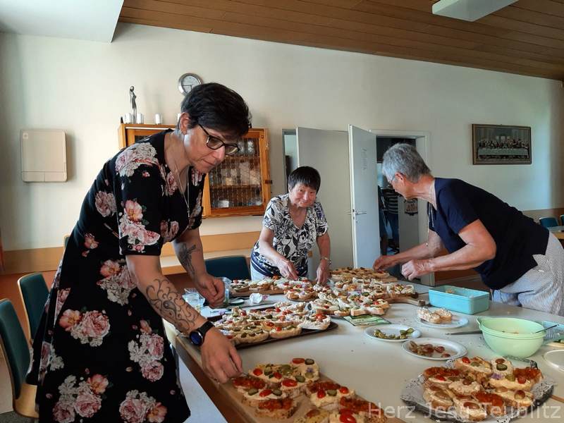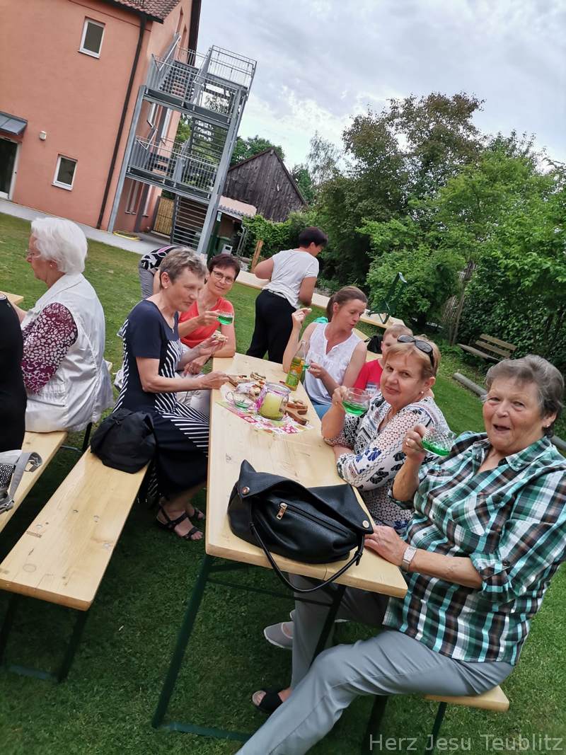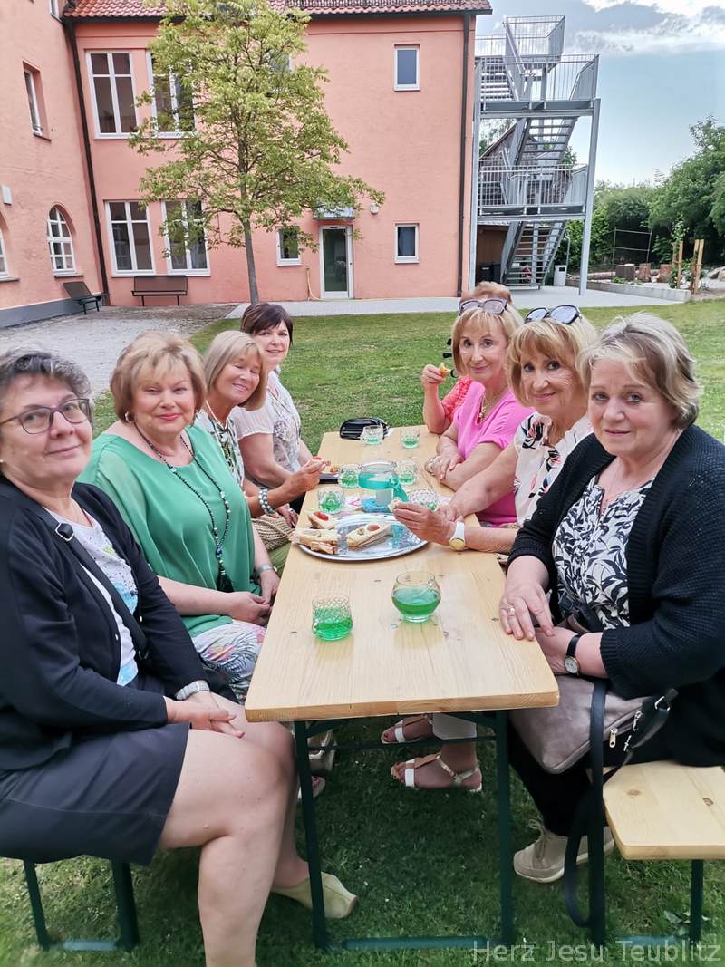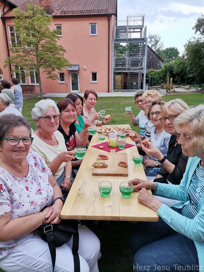 Hoch ging es aber auch nach er Maiandacht her. Denn die Frauen waren nach dem Gottesdienst zur Frühlings-Bowle in den Pfarrheimgarten geladen.
