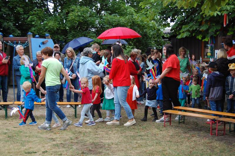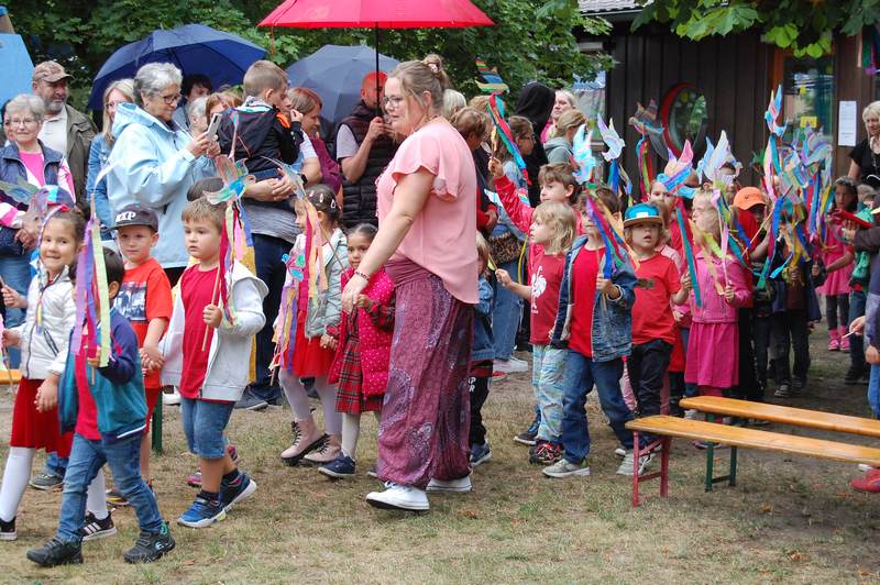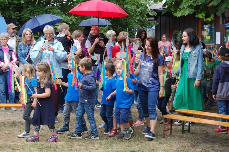 Zwei Jahre mussten die Kinder des Kinderhauses Herz Jesu Teublitz auf ihr großes Sommerfest warten. Denn auch hier schlug die Corona-Pandemie zu. Und als es dann endlich so weit wart, spielte „Sankt Petrus“ nicht ganz mit. Denn der Freitagnachmittag war kalt und zeitweise auch nass. Aber das schreckte die Kinder und die Kindergärtnerinnen nicht, ein schönes buntes Fest mit den Eltern und Freunden der Heranwachsenden zu feiern.