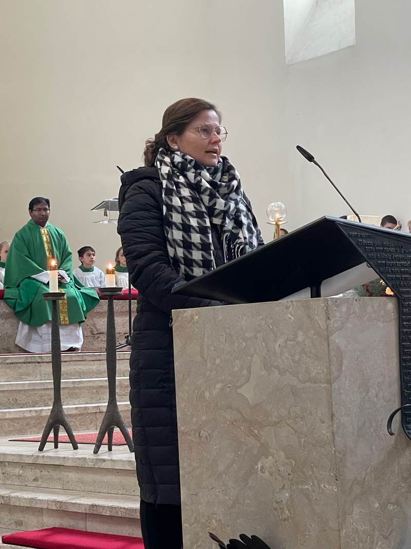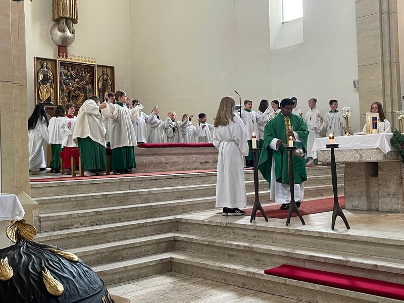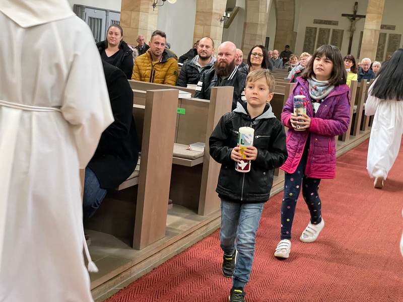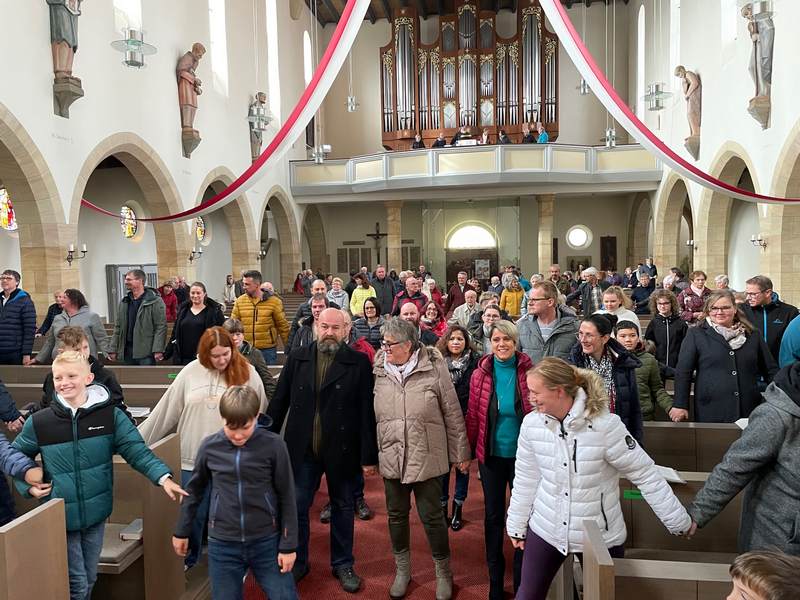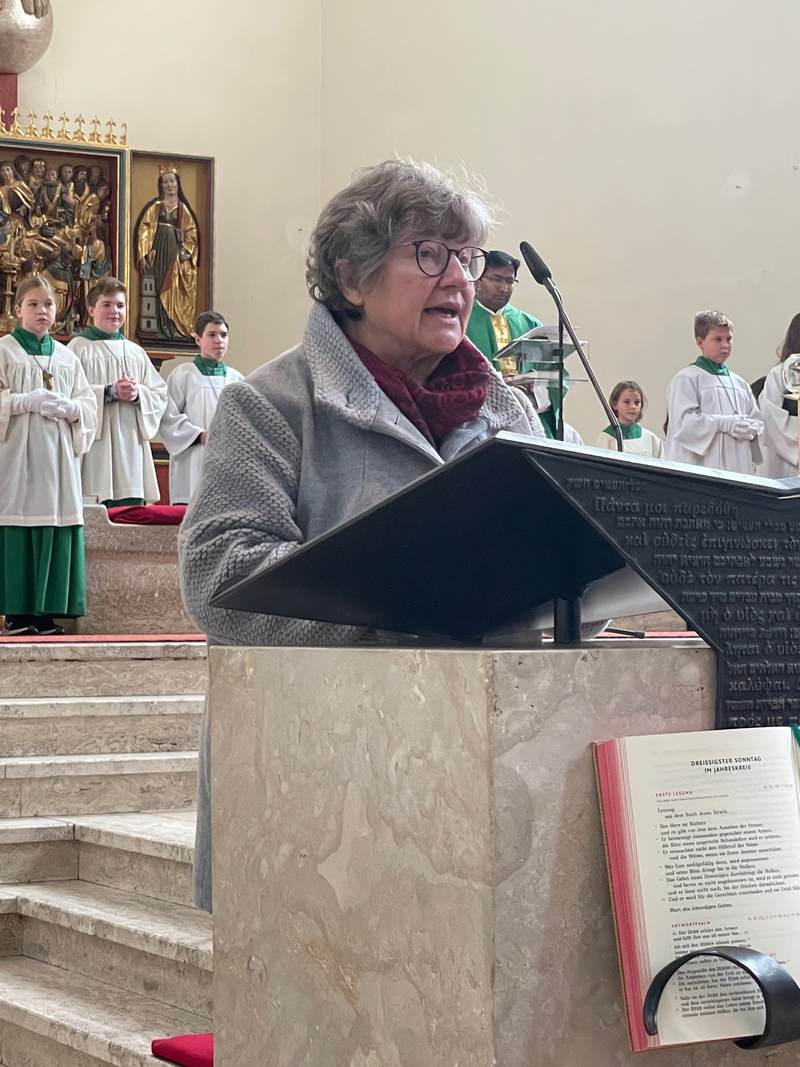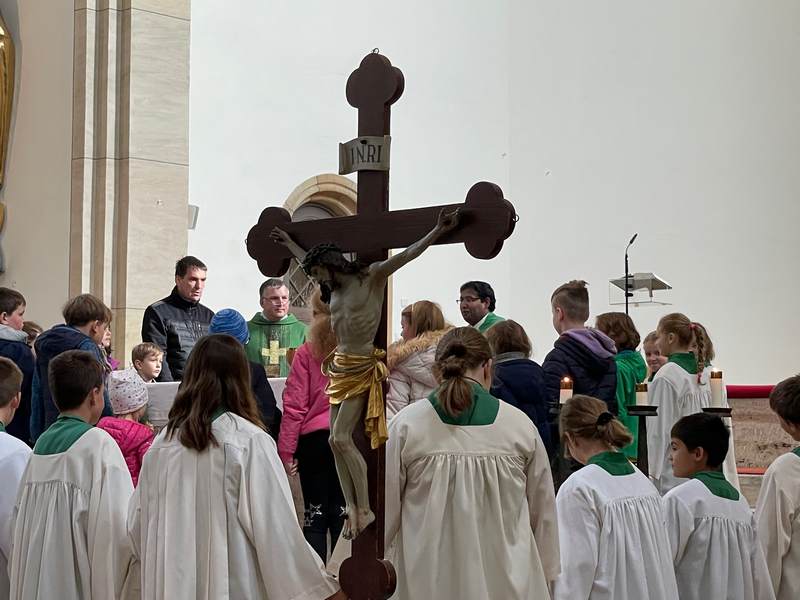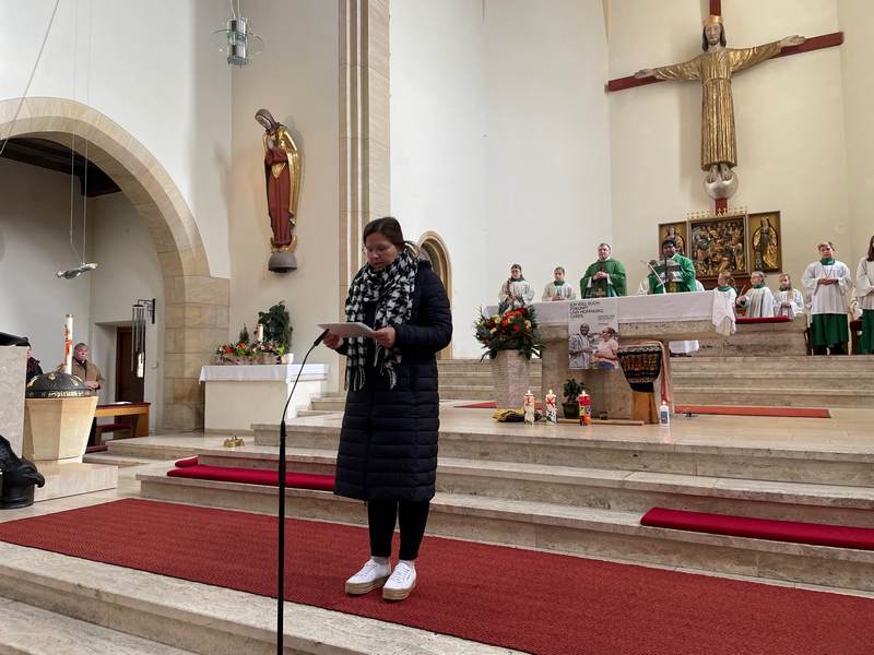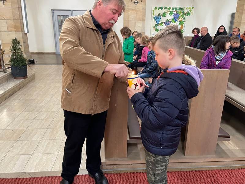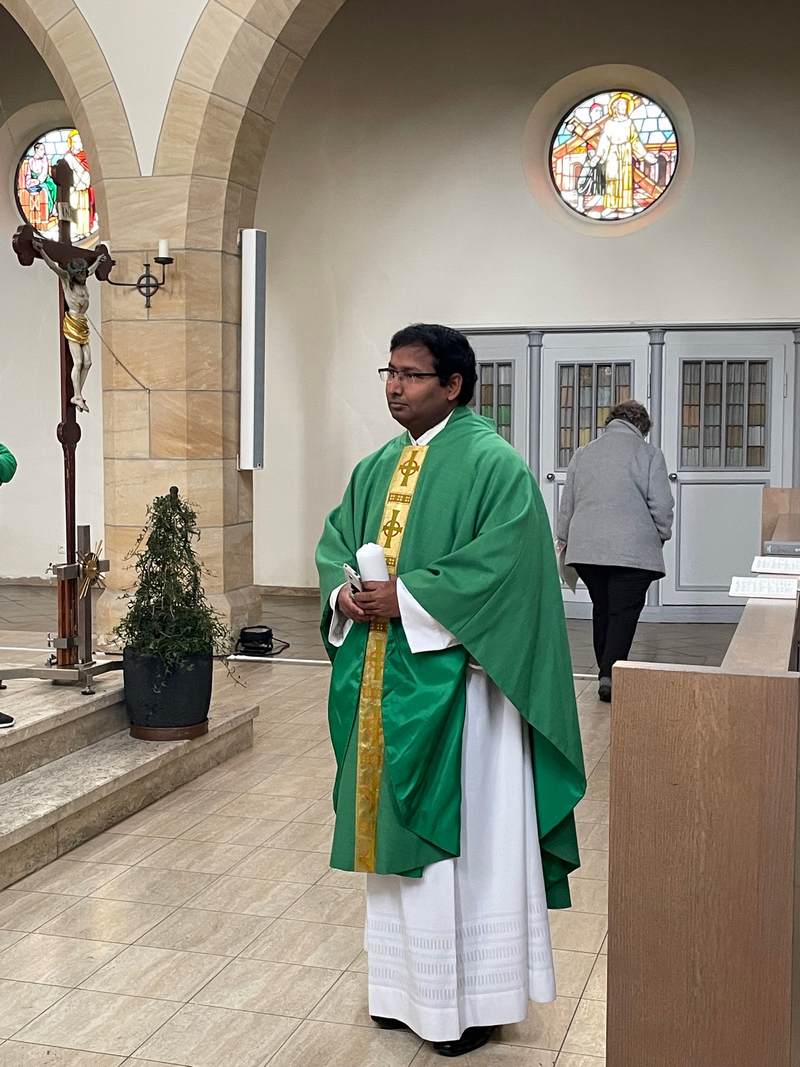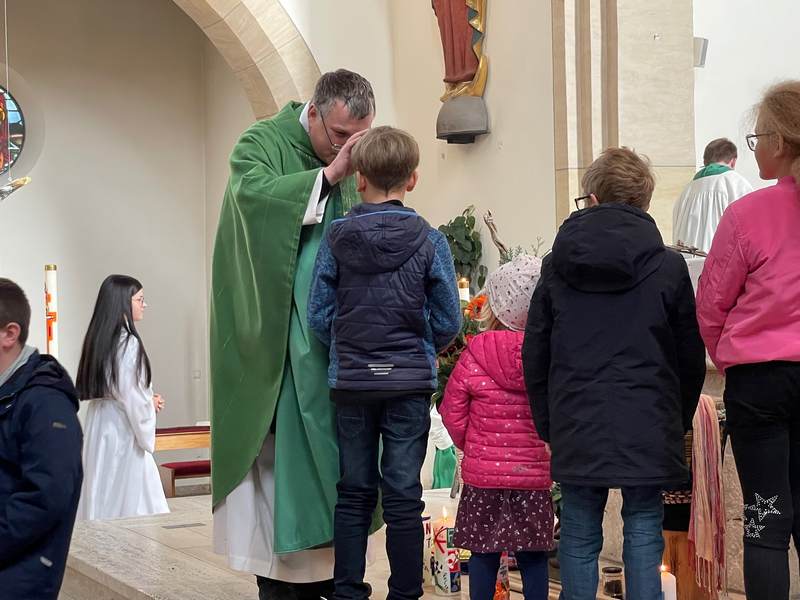 Dabei waren diese aktiv in den Gottesdienst mit eingebunden. Schon gleich zu Beginn galt es die Jubelrufe an Jesus Christus im Kyrie vorzulesen. In seiner Predigt erinnerte der Teublitzer Pfarrer Dekan Michael Hirmer daran, dass weltweit in tausenden von verschiedenen Sprachen täglich Menschen beten. Dabei schritt er den langen Mittelgang ab und fragte die anwesenden Gläubigen, welche Muttersprachen sie denn sprechen. Das Erstaunen war, dass neben Deutsch noch sieben andere Sprachen in der Pfarrgemeinde Teublitz zu Hause sind. „Miteinander sind wir eine große Familie Gottes!“, fasste der Dekan seine Predigt zusammen, „ganz egal welche Sprache wir sprechen, wir sind alles geliebte Kinder Gottes.“