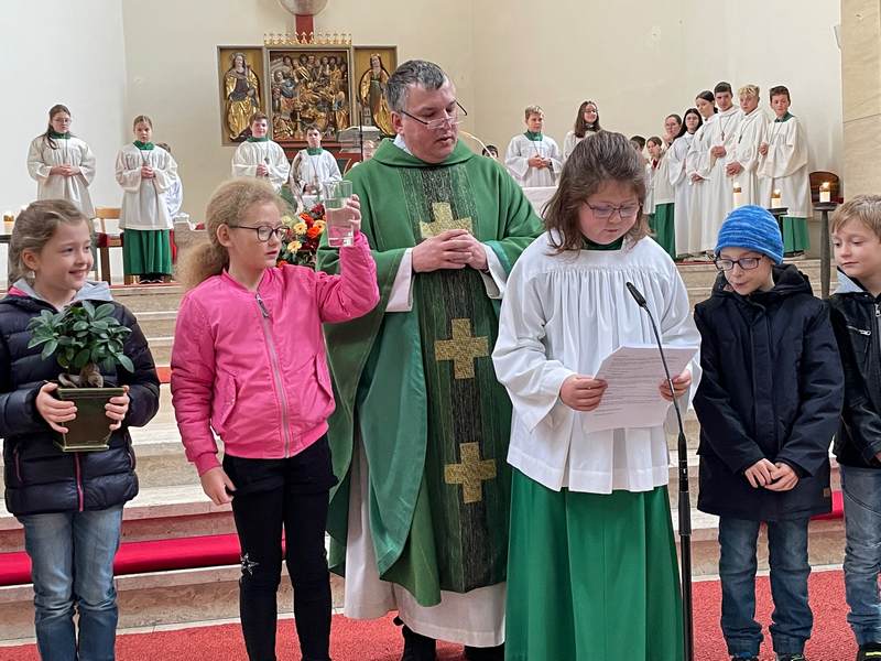 Alljährlich ist es für die Schüler der dritten Klasse ein Highlight ihrer Kindheit. Denn es wird Erstkommunion gefeiert und sich darauf vorbereitet. Die Vorbereitungsphase auf den Empfang der ersten heiligen Kommunion begann in Teublitz am Weltmissionssonntag. Kaplan William Akkala bereitet 21 Kinder auf das Sakrament der Eucharistie und der Beichte vor. In einem feierlichen Gottesdienst stellten sich die Kommunionskinder der Gemeinde vor.