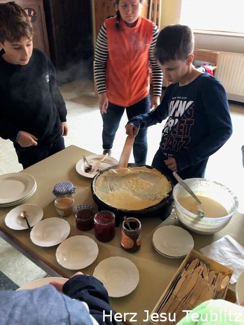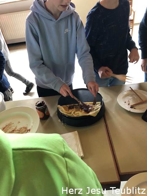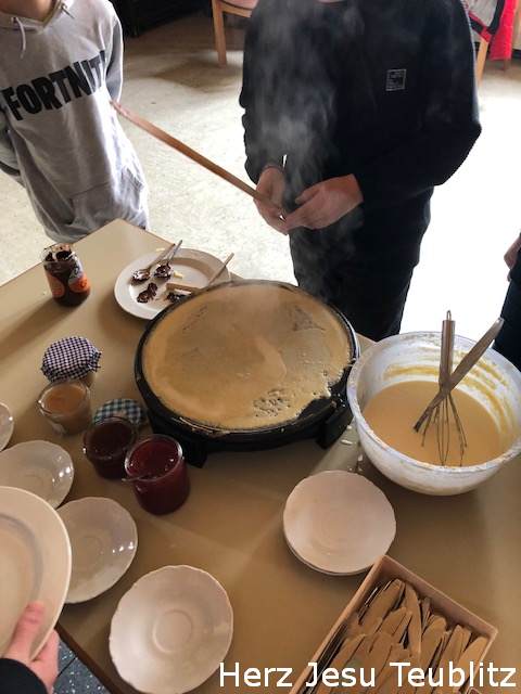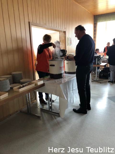 Doch für die Teublitzer Firmlinge war nicht nur der Gottesdienst besonders, den sie gemeinsam mit Werner Förster vom Weltladenteam vorbereiteten. Vor allem das gemeinsame Essen danach werden die Jugendlichen so schnell nicht vergessen. Zum jährlichen Fastensuppen-Essen luden Pfarrgemeinde und Weltladen gemeinsam ein. Die einfache Kartoffelsuppe wurde nicht nur in Solidarität zu den Armen dieser Welt gegessen, sondern auch durch die Firmbewerber zubereitet. Tags zuvor traf man sich dafür im Pfarrheim, bewaffnet mit Kartoffelschäler, Messer und Schneidebrett. Das Ergebnis konnte sich sehen lassen. Die Suppe schmeckte jedem und brachte noch eine kleine Spende ein, die Weltladenleiterin Christl Luber an Dekan Michael Hirmer für die Misereor-Aktion übergab.