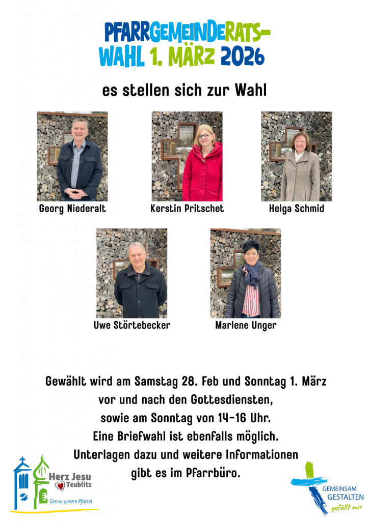 Ihre Stimme zählt! Die PGR-Wahl steht an – und Briefwahl ist ab sofort möglich. Die Unterlagen können ganz unkompliziert im Pfarrbüro abgeholt werden.