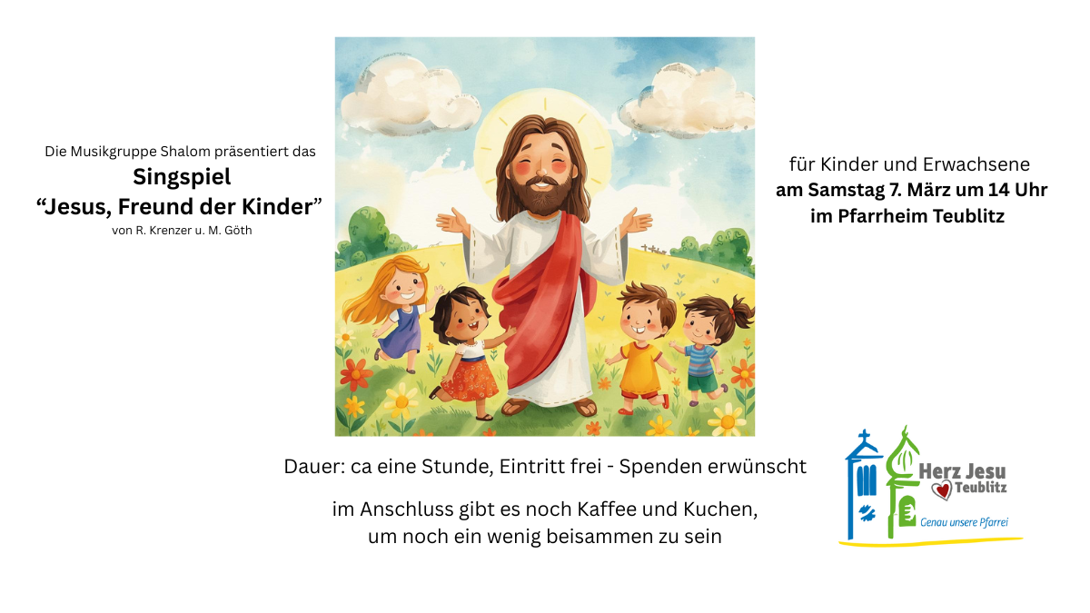 Gemeinsam mit der Gruppe Shalom aus Passau können sie Stationen aus dem Leben Jesu mit beschwingten Liedern und Texten in kindgerechter Form erleben.