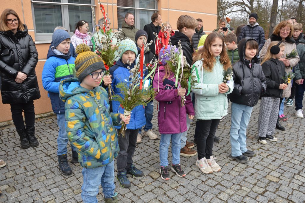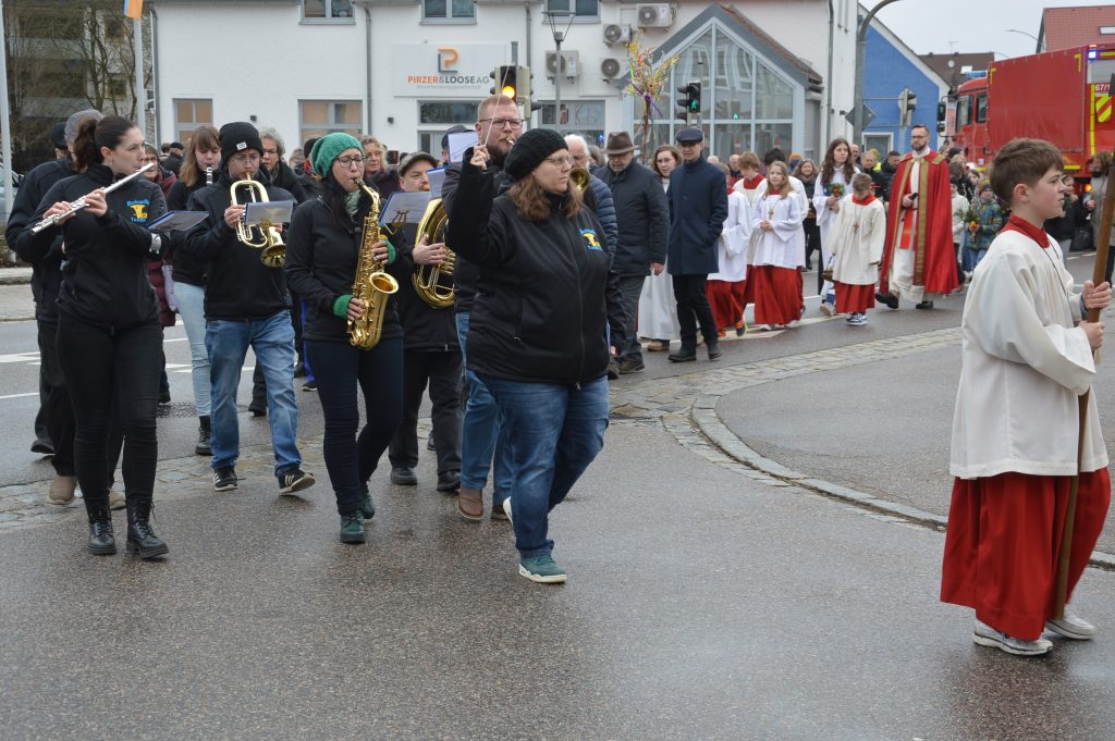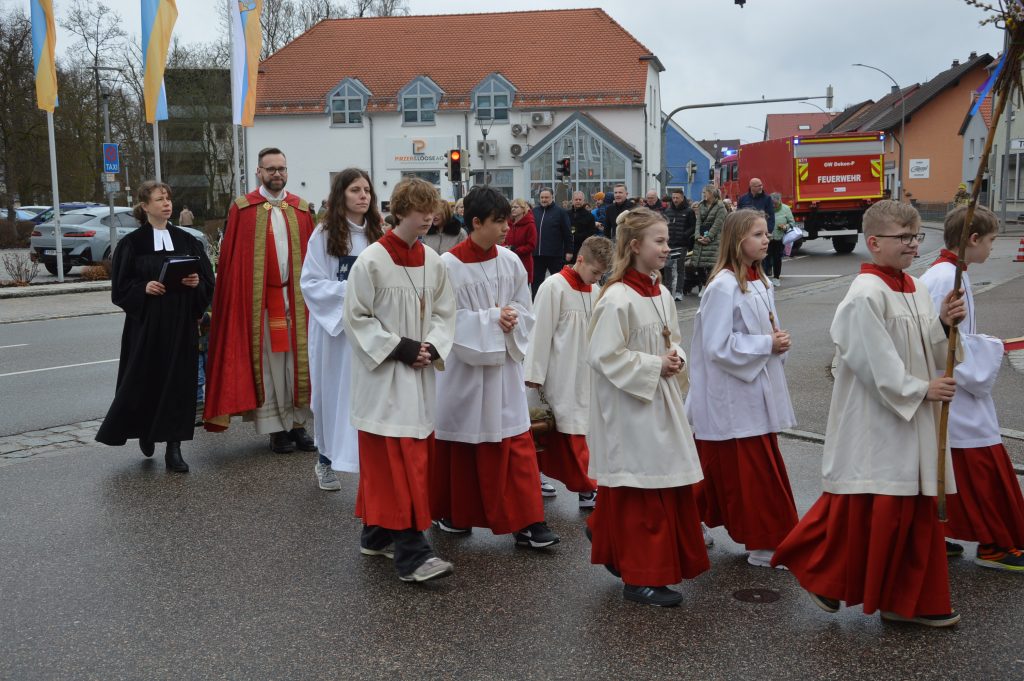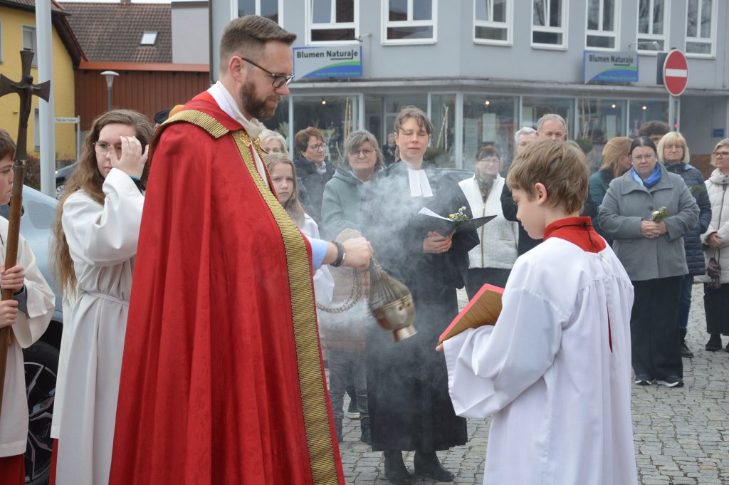 Traditionell bringen die Gläubigen zum Palmsonntag ihre Palmbuschen und Palmzweige mit – ein alter, schöner Brauch, der uns erinnert: Die Menschen in Jerusalem empfingen Jesus mit Jubel und Palmzweigen. In diesem Geist segneten Pfarrer Lobmeier und Pfarrerin Fiedler-Stahl gemeinsam die mitgebrachten Buschen und Zweige – ein ökumenischer Segen, der von Herzen kam und die Verbundenheit beider Gemeinden sichtbar machte.