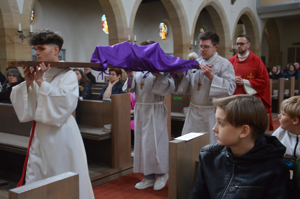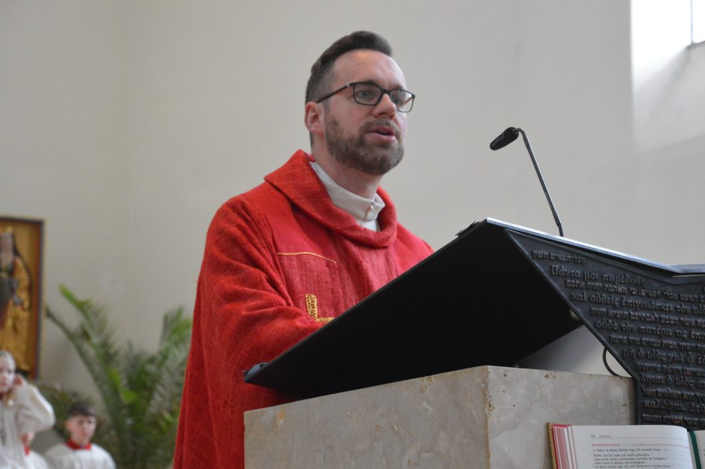 Am Lied „Kreuz, auf das ich schaue“ (GL 270) entfaltete er drei Einladungen: Das Kreuz als Zeichen der Nähe Christi – auch dort, wo wir ihn nicht spüren. Das Kreuz als Zufluchtsort in schweren Tagen, wo wir Sorgen und Ängste ablegen dürfen. Und schließlich das Kreuz als Wegbegleiter – nicht zum Stehenbleiben, aber auch nicht zum Achtlosvorbeilaufen.