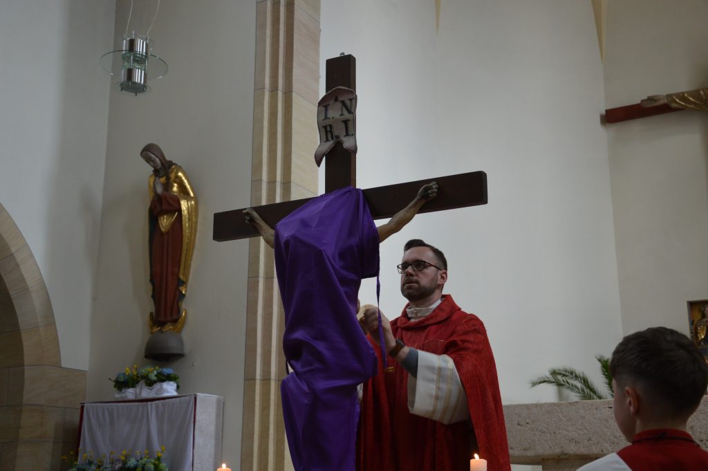 Der Höhepunkt der Liturgie war die feierliche Enthüllung und Verehrung des Kreuzes. Dreimal erklang der Ruf: „Seht das Holz des Kreuzes, an dem das Heil der Welt gehangen“ – und die Gemeinde kam nach vorne. Still, nachdenklich, bewegt. Jeder Schritt ein persönlicher. Jede Berührung ein Gebet.