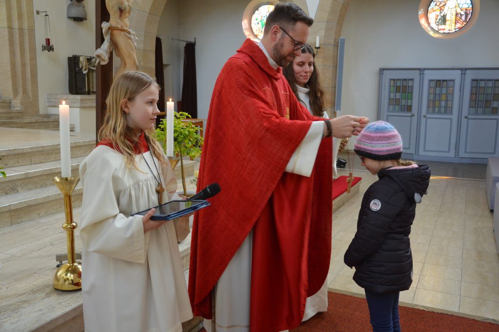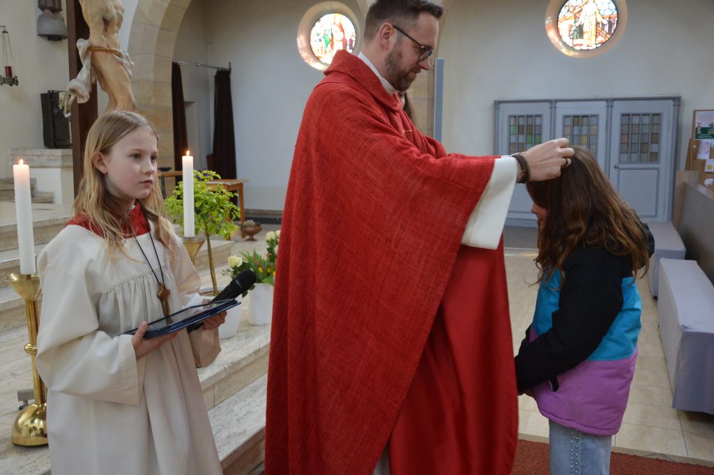 Ein besonderer Moment gehörte den Erstkommunionkindern: Sie erhielten ihr persönliches Erstkommunionkreuz – handgefertigt von Christinnen und Christen in Bethlehem. Von der Geburtsstadt Jesu in die Hände unserer Kinder – ein Zeichen weltweiter Verbundenheit aller Getauften.