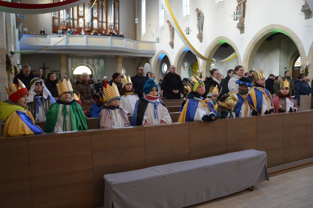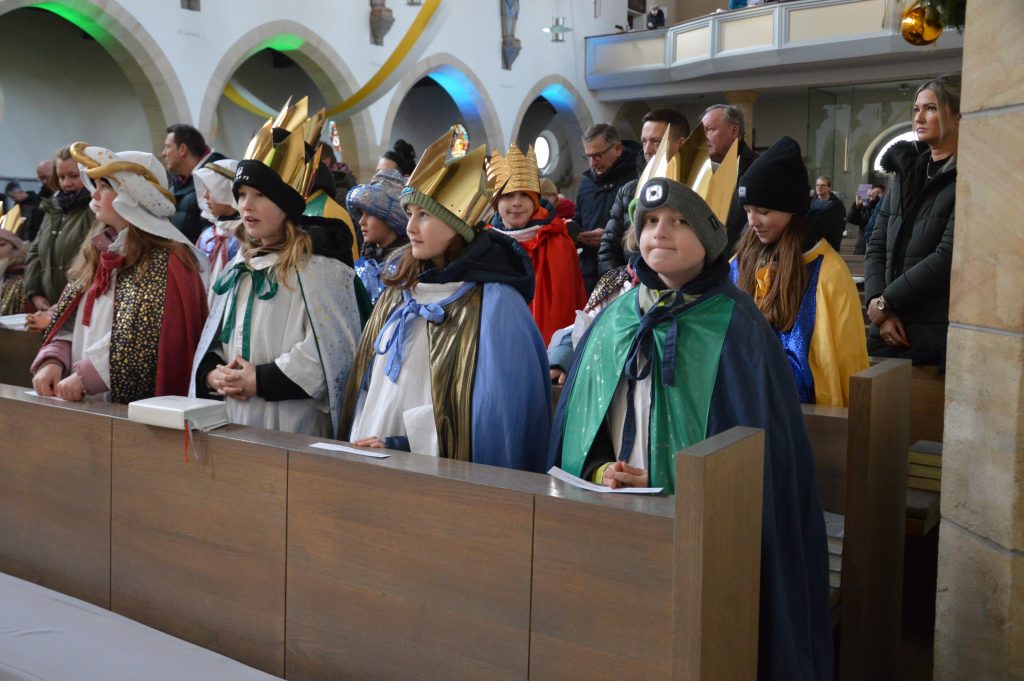 Unter dem Motto „Schule statt Fabrik – Sternsinger gegen Kinderarbeit“ machte die Aktion in diesem Jahr auf die Situation vieler Kinder weltweit aufmerksam. In der Predigt verdeutlichten Pfarrer Lobmeier und Pastoralassistentin Anne Arend, dass der Schulbesuch für viele Kinder keine Selbstverständlichkeit ist. Zum Abschluss des Gottesdienstes wurden Weihrauch, Kreide, Segensaufkleber und Dreikönigswasser gesegnet.